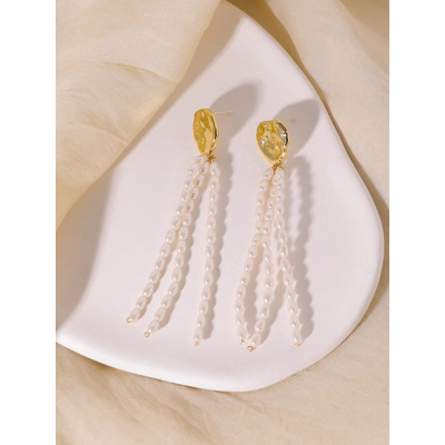 Hand-beaded pearl earrings Long temperament small rice drop