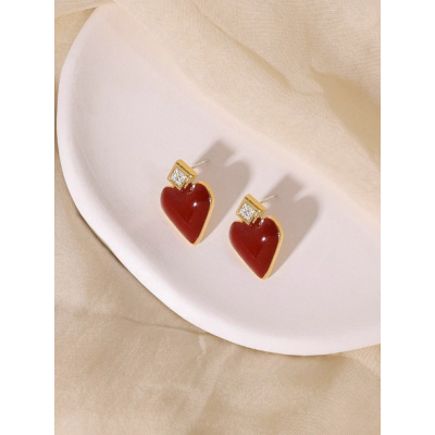 Red enamel love ear stud French premium Diamond sweet heart ear clip