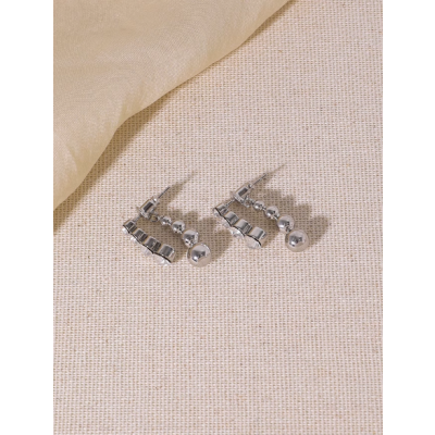 Two wear drop size gradient round ball metal bead chain earrings