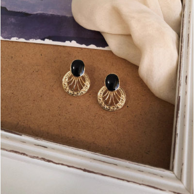 Vintage black gold antique palace style hollow carving pattern ear clip