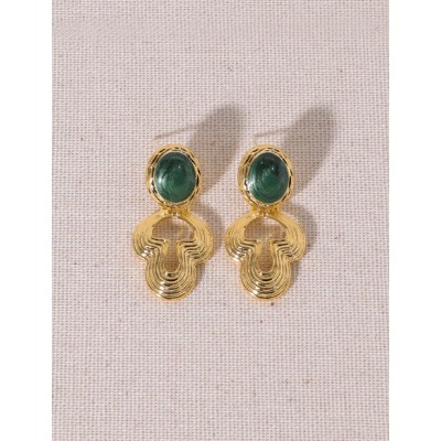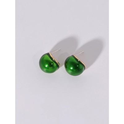 Round ball earrings for women vintage enamel drop glaze emerald studs