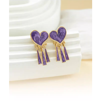 Purple love earrings Long fringe style drop