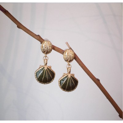 Round earrings Irregular metal scalloped shell pendant long earrings