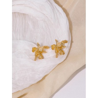 French stereo gold flower earrings for women Vintage Harbor ear clips