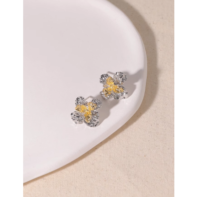 Vintage gold and silver metal color contrast three-dimensional foil flower earring clip
