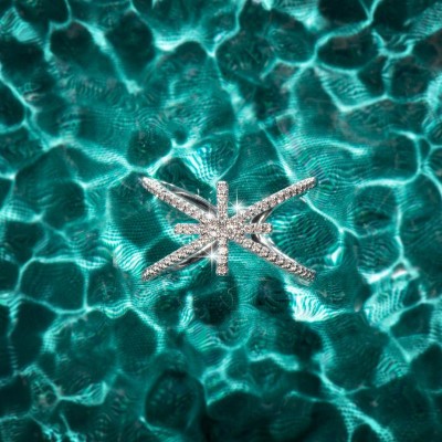 Zirconium ring trend retro ring hexaxed star open temperament small hand jewelry
