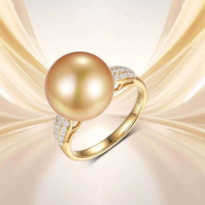 18k gold Nanyang Gold Pearl Diamond ring natural sea pearl