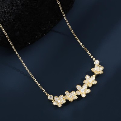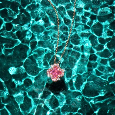 S925 Silver plated real gold powder zirconium rose gold necklace women's four-leaf clover pendant collar