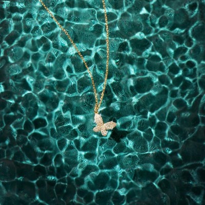Butterfly necklace female electroplated real gold inset zircon light luxury niche to girlfriend gift