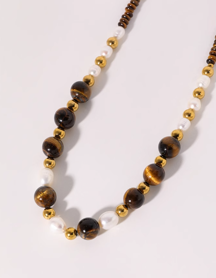 Product details of Pearl necklace for women Vintage natural tiger Eye stone beaded collarbone chain