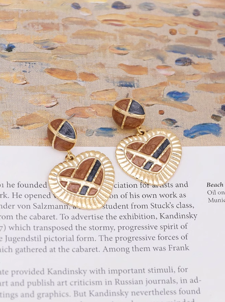 Product details of Love earrings retro niche temperament contrast color heart earrings