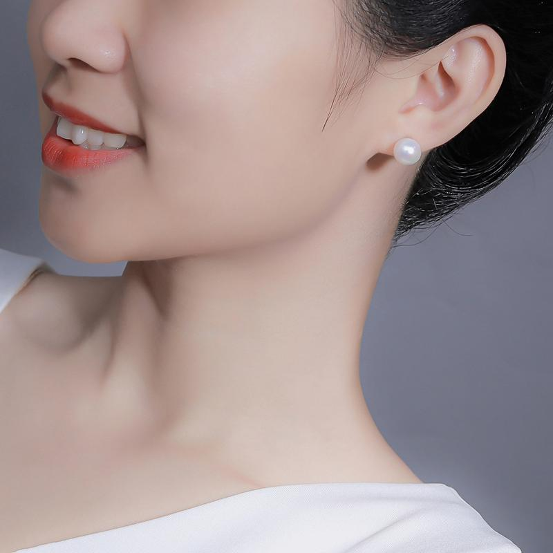 Product details of S925 Silver plated 18K white gold 9-10mm classic simple pearl earrings