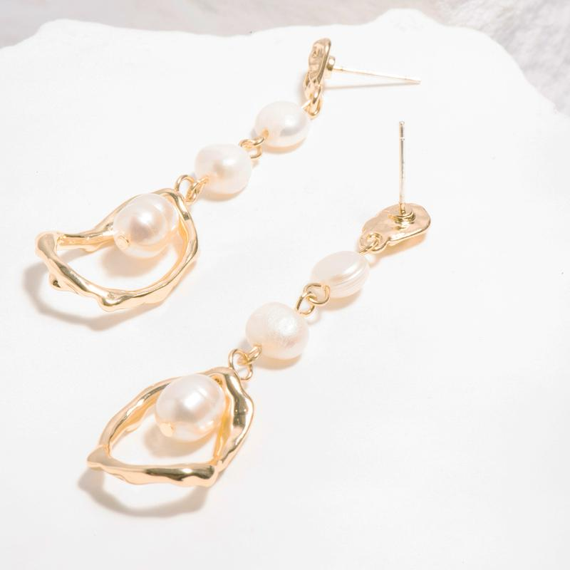 Product details of Fashion earrings Gold geometric long freshwater pearl stud earrings
