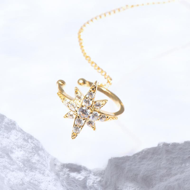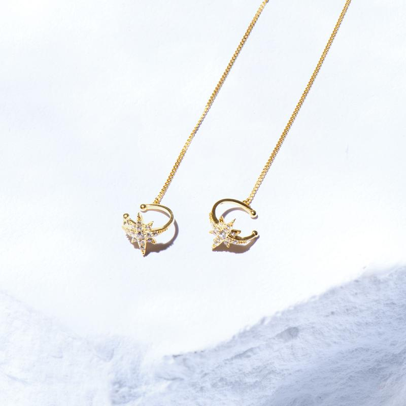Product details of Hexagon star trend earrings electroplated gold chain tassel earrings Retro fashion personality star earrings