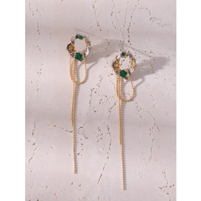 Hollow lava earrings for women long temperament emerald tassel earrings