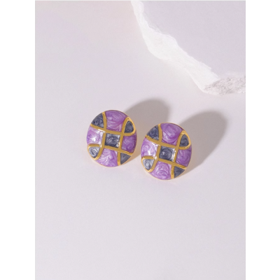 Button earrings for women Vintage Lilac Purple Oval temperament stud earrings