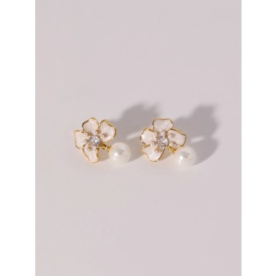 White stereo flower earrings Vintage Pearl earrings for women