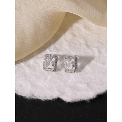 Silver super flash rock candy square zircon earring girl