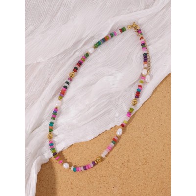 Pink shell spring/summer natural jade beaded Baroque pearl necklace