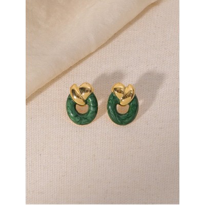 Round ball earrings for women vintage enamel drop glaze emerald studs