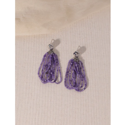 Purple beaded tassel earrings women's high sense long earrings ear clips
