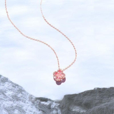 Real gold powder zirconium rose gold necklace women Japan and South Korea high-grade four-leaf clover pendant collar