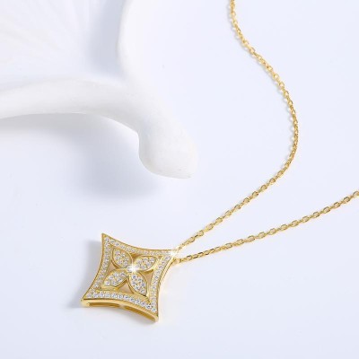 S925 Silver plated real gold powder zirconium rose gold necklace women's four-leaf clover pendant collar