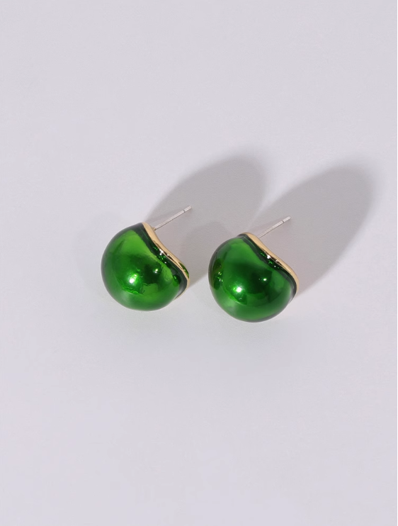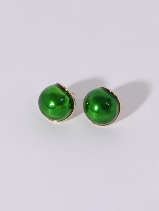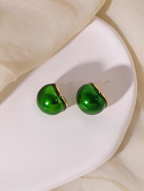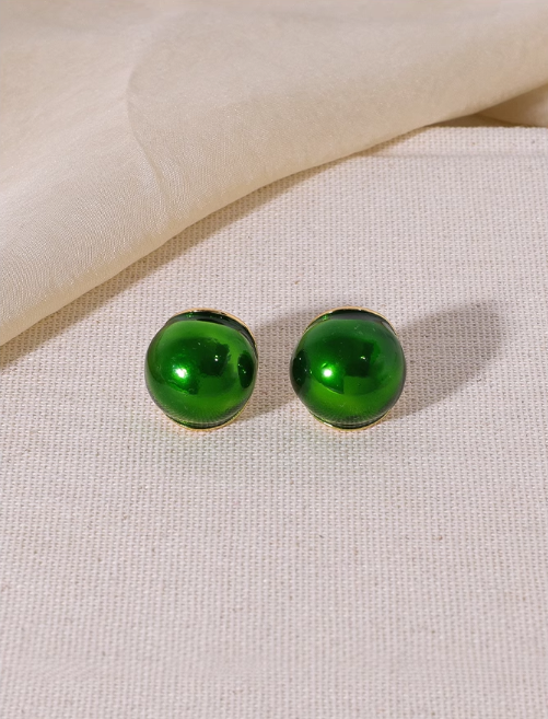 Product details of Round ball earrings for women vintage enamel drop glaze emerald studs