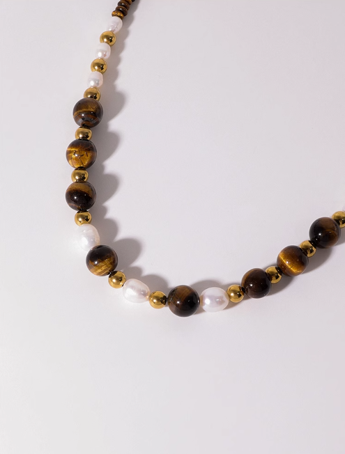 Product details of Pearl necklace for women Vintage natural tiger Eye stone beaded collarbone chain