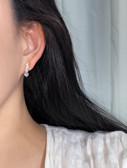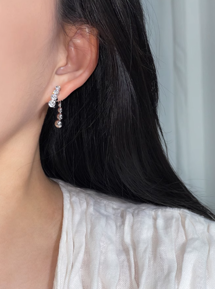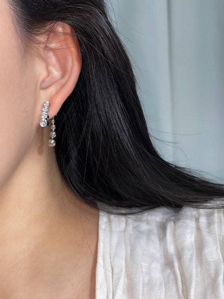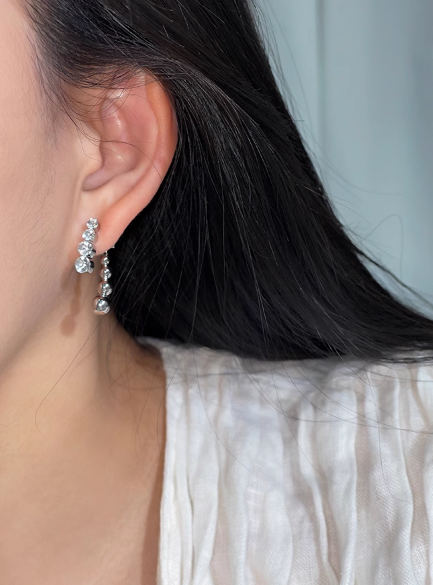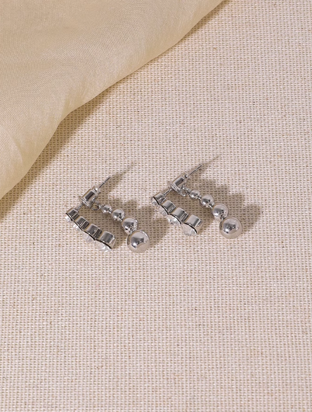 Product details of Two wear drop size gradient round ball metal bead chain earrings