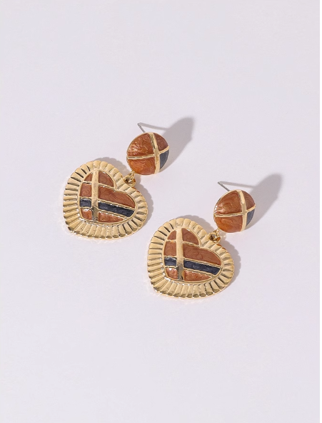 Product details of Love earrings retro niche temperament contrast color heart earrings