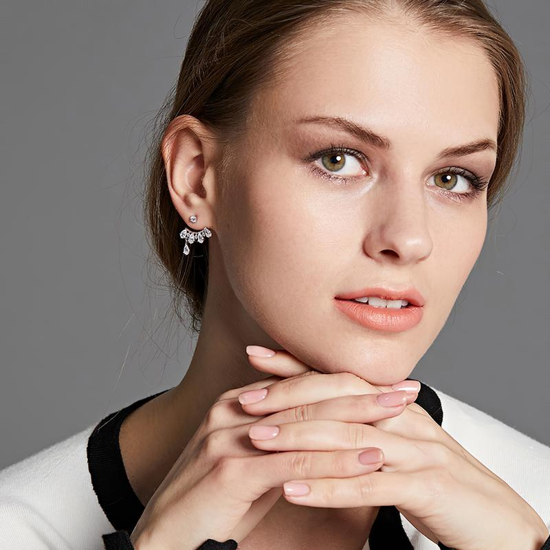 Product details of Front and back stud earrings niche design zircon earrings temperament simple everything stylish sterling silver crystal earrings