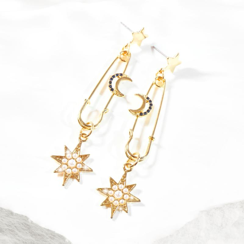 Product details of 8K gold personality exaggerated shape star moon earrings female original creative charming fashion niche earrings