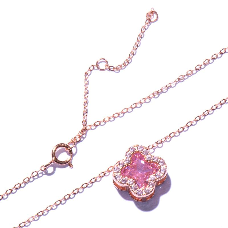Product details of S925 Silver plated real gold powder zirconium rose gold necklace women's four-leaf clover pendant collar
